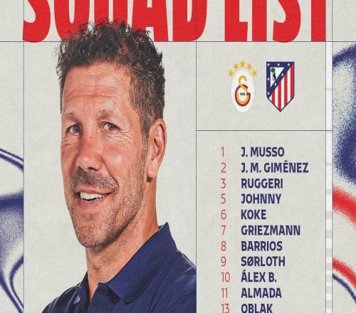 马竞官方公布了欧冠客战加拉塔萨雷的大名单,阿尔瓦雷斯领衔,冈萨雷斯、科克回归。守门员:1-穆索、13-奥布拉克...